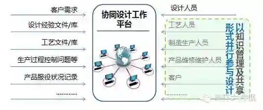 协同设计研发平台一方面通过数据、产品数据、运营数据管理为基础,将设计经验、工艺信息、制造信息、产品服役过程信息(零部件寿命、质量问题记录等)、客户需求等统一纳入设计需求范畴,也即完成客户等纳入需求考虑,保证设计需求的全面响应,实现定制化奠定基础,逐步协助企业服务化转型;另一方面具体执行设计研发业务支持基于多学科融合的综合,支持多学科并行设计等。