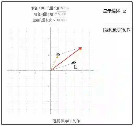 向量加法的定义几何解释如下动画, 图中一个向量的起点置于两一个向量的终点.