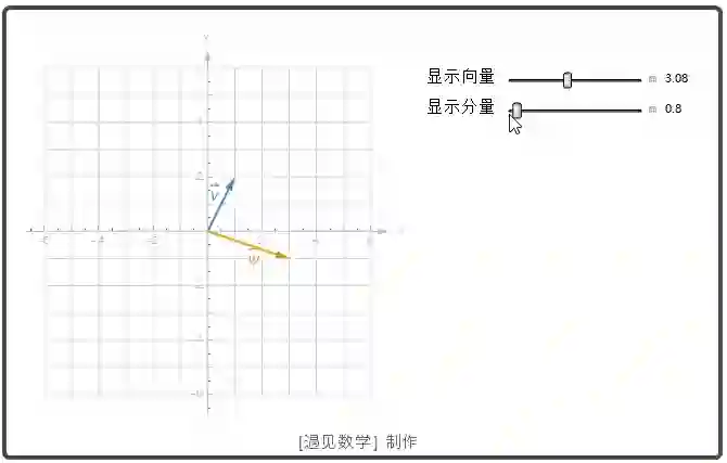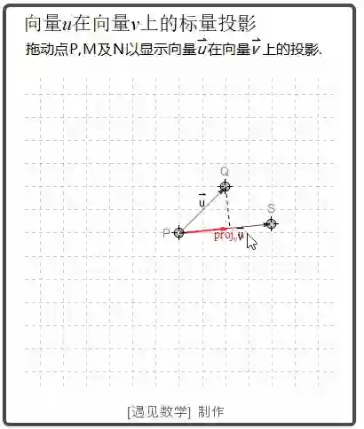 下面看看向量 u 在 v 上的向量投影动画: