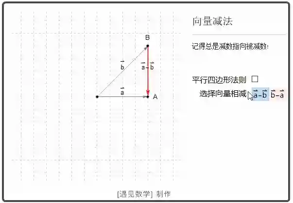 两个向量的差 u - v 意义是 u - v = u + (-v)