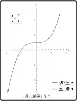 一个向量是一条曲线再一个点 P 的切向量或法向量, 如果它分别平行或垂直于曲线再点 P 的切线. 请观察下图动画: