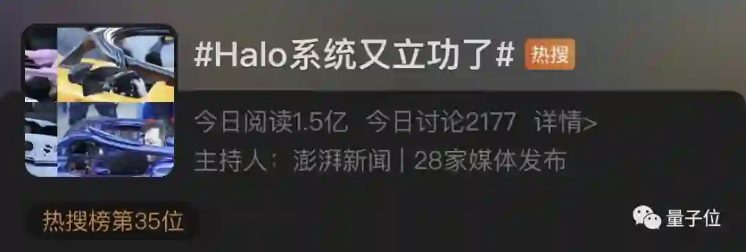 随即与之相关的话题——“Halo系统又立功了”登上热搜:
