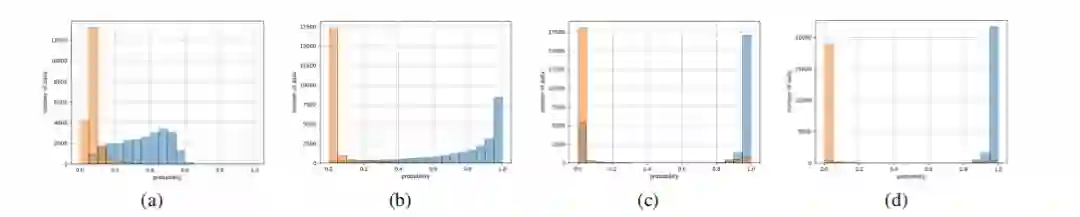 为0.5,Figure3(d)展示了SelPL在经过SelNL处理后训练的结果,几乎所有无噪数据的置信度都接近1。