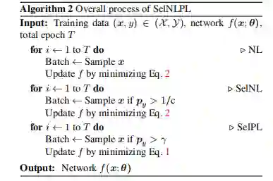 我们提出了使用噪声数据进行训练的NL,这是一种训练CNN的学习方法,“输入图像不属于该互补标签”。这减少了用有噪数据训练CNN的分享,因为可以随机选择不具有互补信息的互补标签。此外,为了让网络收敛更快,我们扩展了本方法,选择性的采用了PL,称为选择性负学习和正学习(SelNLPL)。PL被有选择地用于训练期望干净的数据,随着NL的进展,数据选择成为可能,从而产生了滤除噪声数据的优越性能。通过简单半监督训练技术,我们的方法实现了噪声数据分类的SOAT性能,证明了SelNLPL对噪声过滤的有效性。