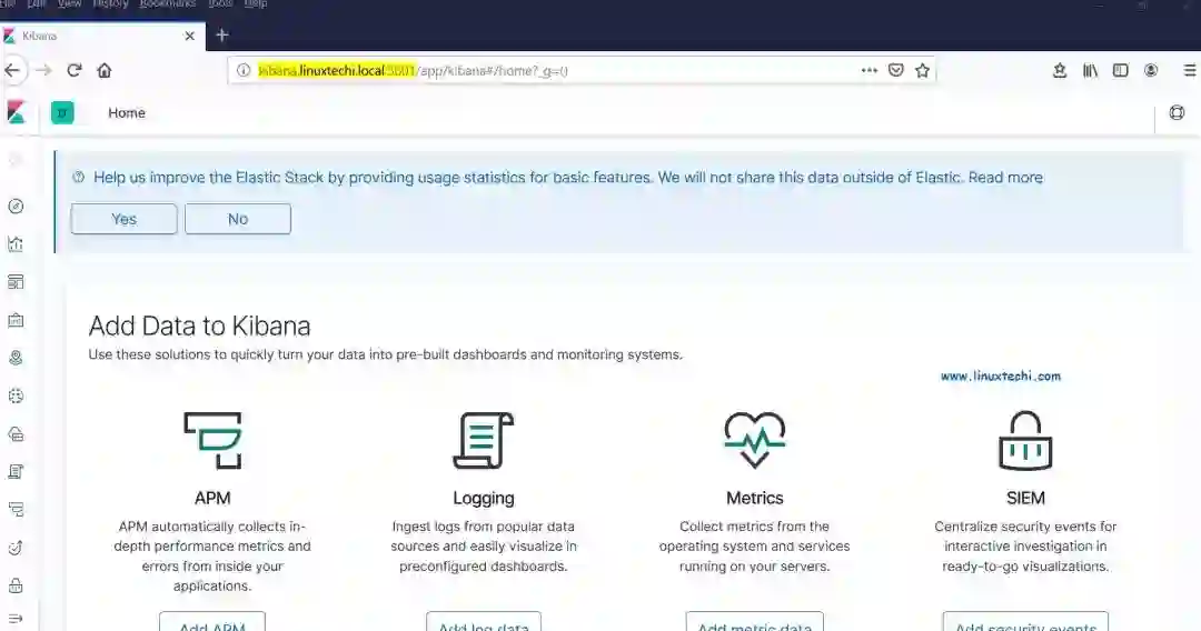 使用以下 URL 访问 Kibana 界面:http://kibana.linuxtechi.local:5601
