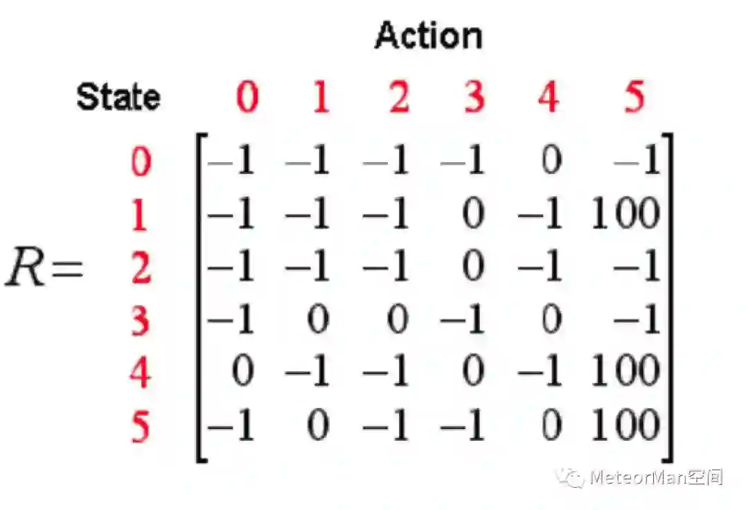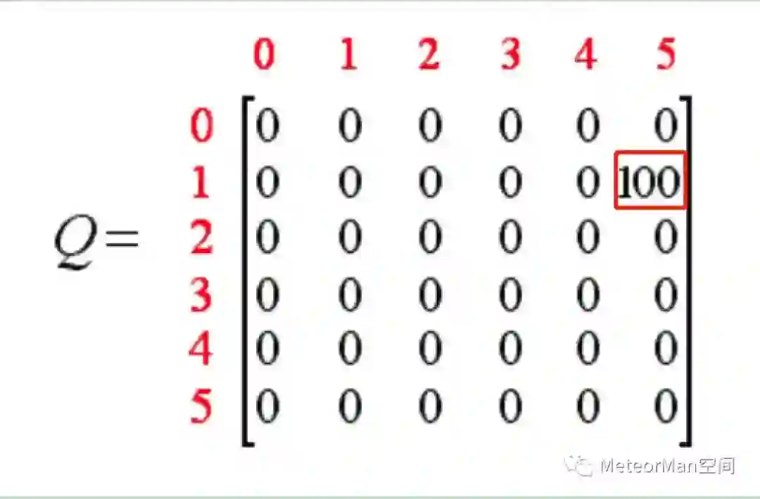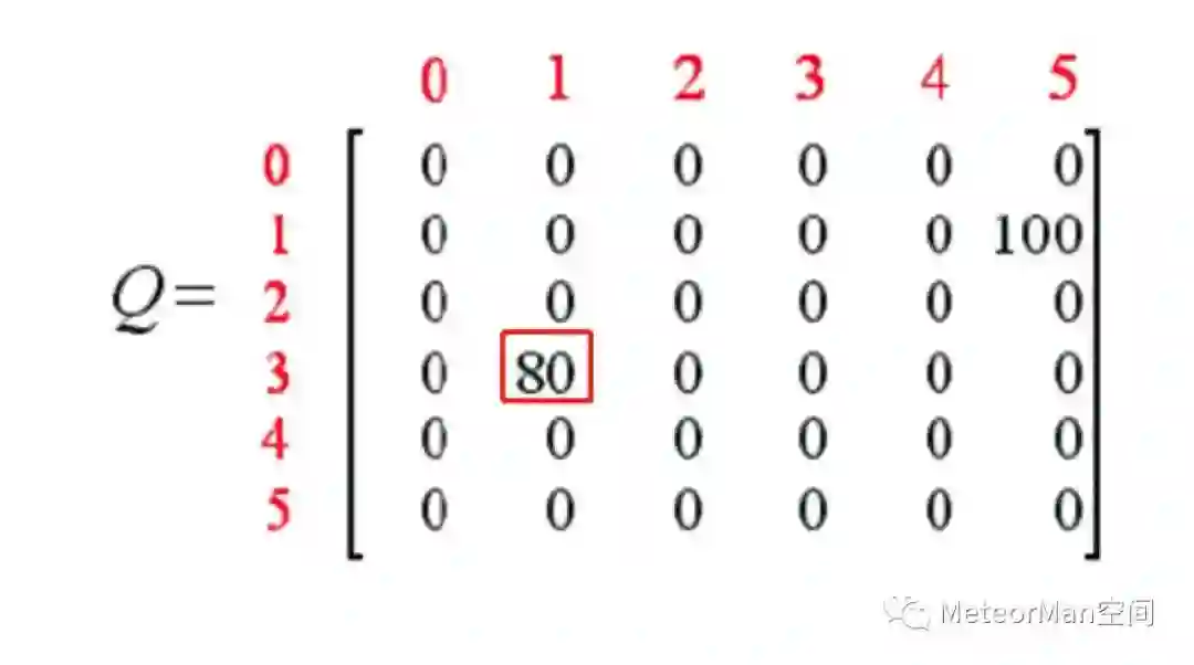 随后我们再创建一个Q表,表示学习的数据和标签信息,即经验矩阵,与R矩阵同阶,初始化为0矩阵。