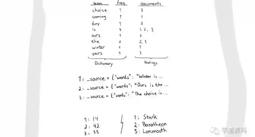 当我们搜索的时候,首先将搜索的内容分解,然后在字典里找到对应Term,从而查找到与搜索相关的文件内容。