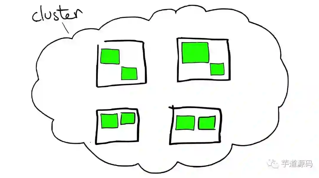在一个索引下,分布在多个节点里的绿色小方块称为分片——Shard。