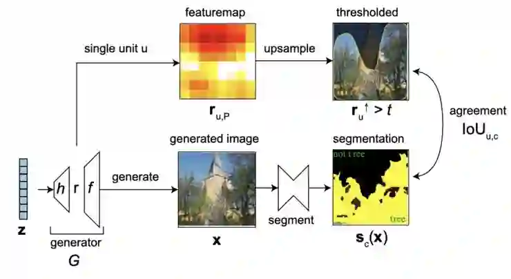 生成器 G 可以看做是一个潜在向量 z 到一个生成图像 x 的映射:。我们的目标是理解内部表示 r,它是生成器 G 中某个特定层的输出。