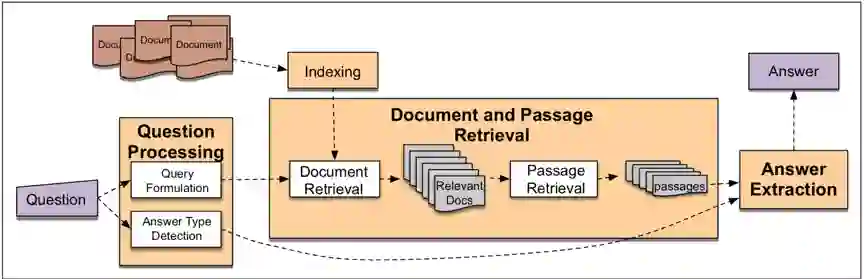 文档段落检索部分的目标是从大量文档中抽取与问题相关的部分段落,以便缩小答案抽取的范围,提高文档问答的速度。目前使用的检索方法主要有: