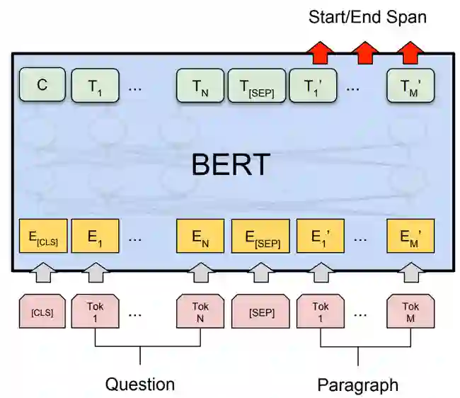 由于预训练模型在自然语言处理任务上的卓越性能,BERT等预训练模型成为阅读理解研究者们的心头好。如下图所示是使用BERT模型做阅读理解任务的示意图[4]。