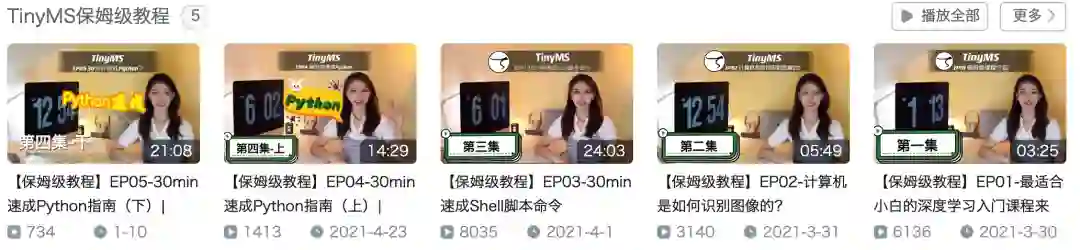 过年期间,TinyMS保姆级教学视频还会持续更新,依然由我们集美貌与才华于一身的Charlotte老师(TinyMS项目负责人)亲自操刀,大家前往B站搜索【MindSpore官方】即可观看教程,或直接戳下方图片进入,为了下次不迷路,可以直接关注我们哦~