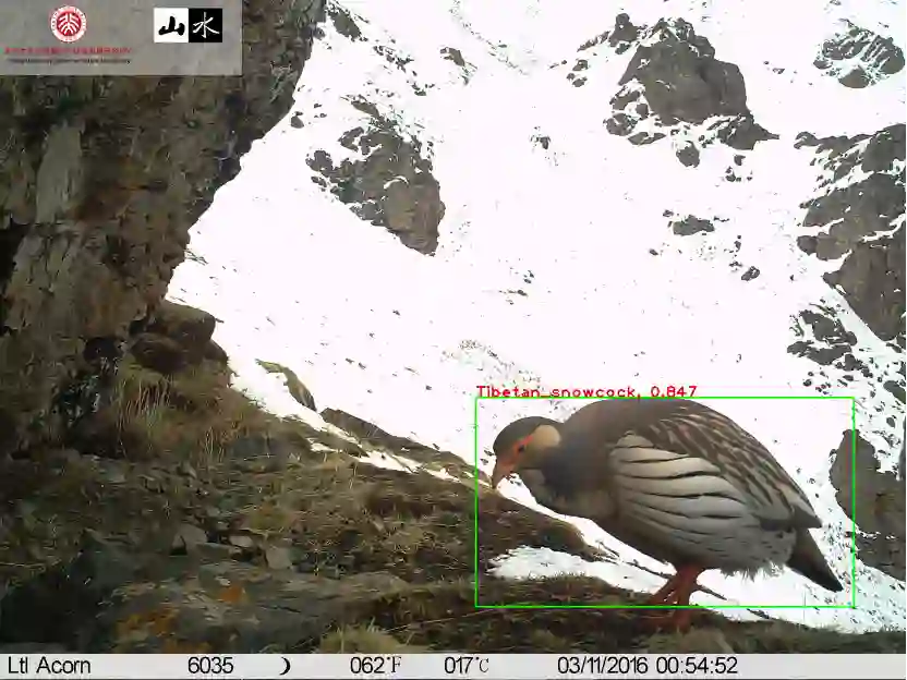 TinyMS新版本的可视化特性的设计初衷来源于我们与山水自然保护中心的合作项目——基于MindSpore实现三江源自然保护区红外相机AI物种识别(点击标题可查看项目详情)。通常,在训练完模型后,大多数模型开发人员会采用模型验证工具来计算精度,召回率等指标展现模型效果,但对于非深度学习开发人员来说这些指标并不直观。我们希望让用户通过TinyMS可视化工具直接看到模型推理生成的图片结果。传统的可视化工具依然需要开发人员具备一定的深度学习开发经验,比如数据处理、构建网络、加载模型、执行推理等一系列流程,如果想直观看到图片进行推理后的结果,还需要掌握OpenCV的使用,这些步骤对于非AI开发者用户来说仍较困难,因此,TinyMS提供了一键式可视化推理工具,封装了模型构建等大部分技术细节,用户仅需几个简单的步骤即可实现OpenCV静态图片检测和动态摄像头视频检测,下面展示如何使用静态图像进行检测的可视化推理结果。