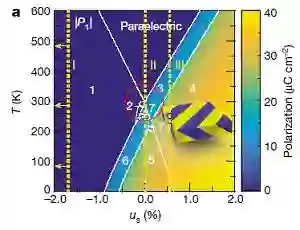 不同于介电材料,铁电材料在其居里相变温度(Tc)之下具有自发的电极化。自1920年被发现以来,铁电极化在外加电场下的调控行为已被广泛应用于驱动,储能以及传感等器件中。近年来,存在于相邻铁电畴间的畴壁被发现可以大大增强材料的物理性能。例如在外加电场作用下,畴壁的移动可以大大增强材料的介电性能;以及近来发现的铁电畴间的电导调制行为已被视为实现新一代高速存储器的解决方案。