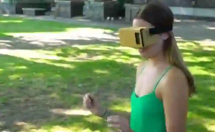 在实验中,他们先把Tilt Brush的艺术品整个放置在户外环境中,然后让志愿者戴上Cardboard,依靠VR中显示点云数据,来确定现实世界对象的位置。根据测试结果,只要戴着Cardboard像参观画廊那样慢慢行走,志愿者的两只眼睛都可以单独看AR画面(双通道AR),还可以通过iPhone 7内部进行每秒60帧的VR位置追踪来定位。
