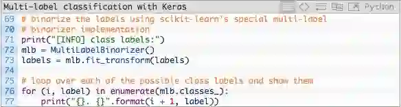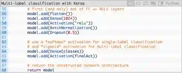 应用Keras执行多标签分类是直观的,它包含两个主要的步骤: