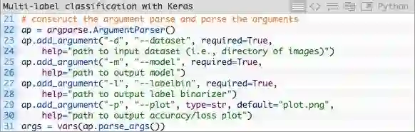 既然我们已经实现了SmallerVGGNet,接下来让我们创建train.py,我们用于训练多标签Keras神经网络的脚本。