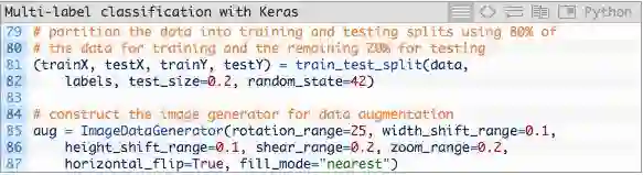 我们的数据增强器对象在第85至第87中被初始化。当你的没类数据少于1000张图像时,数据增强是一个最好的实践也或许是一个“必须”的实践。