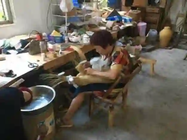 东阳东风竹编工厂正在工作的工人