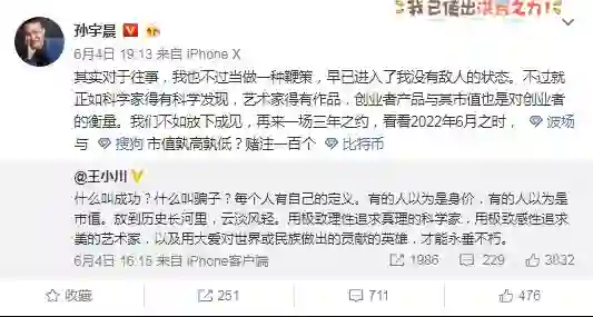 当然对于孙宇晨的对赌邀约,王小川并没有理他。