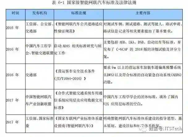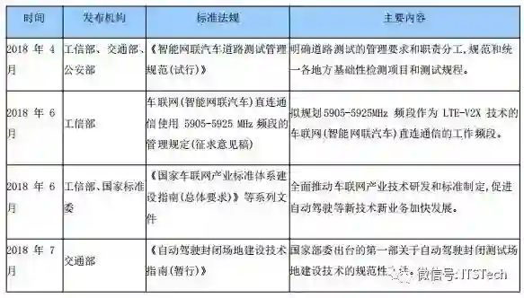国家级自动驾驶道路测试标准:2018 年 4 月 12 日,工业和信息化部、公安部、交通运输部联合发布了《智能网联汽车道路测试管理规范(试行)》。该规范自 2018 年 5 月 1 日起开始施行。这是我国首个针对自动驾驶汽车测试的考核评价标准。根据规范中的解释,规范中提到的智能网联汽车指的是搭载先进的车载传感器、控制器、执行器等装置,并融合现代通信与网络技术,实现车与 X(人、车、路、云端等)智能信息交换、共享,具备复杂环境感知、智能决策、协同控制等功能,并最终可实现替代人来操作的新一代汽车,即通常意义上的智能汽车、自动驾驶汽车。这其中包括乘用车、商用车,但不包括低速汽车和摩托车。