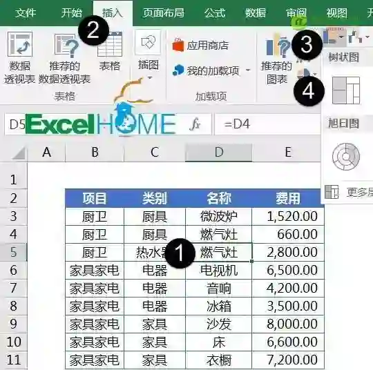 1.选中表内所有数据,单击【插入】-【树状图】。