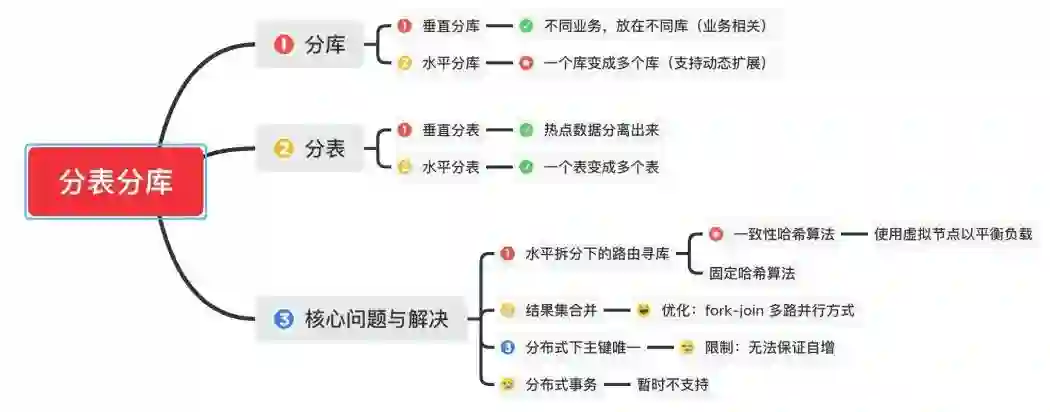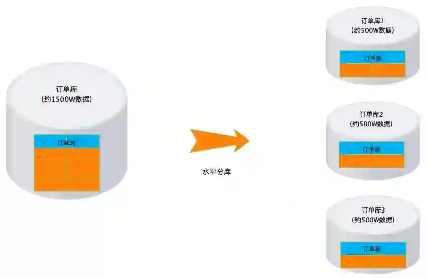 垂直分库通过将表按业务分类,然后分布在不同数据库,并且可以将这些数据库部署在不同服务器上,从而达到多个服务器共同分摊压力的效果,但是依然没有解决单表数据量过大的问题。