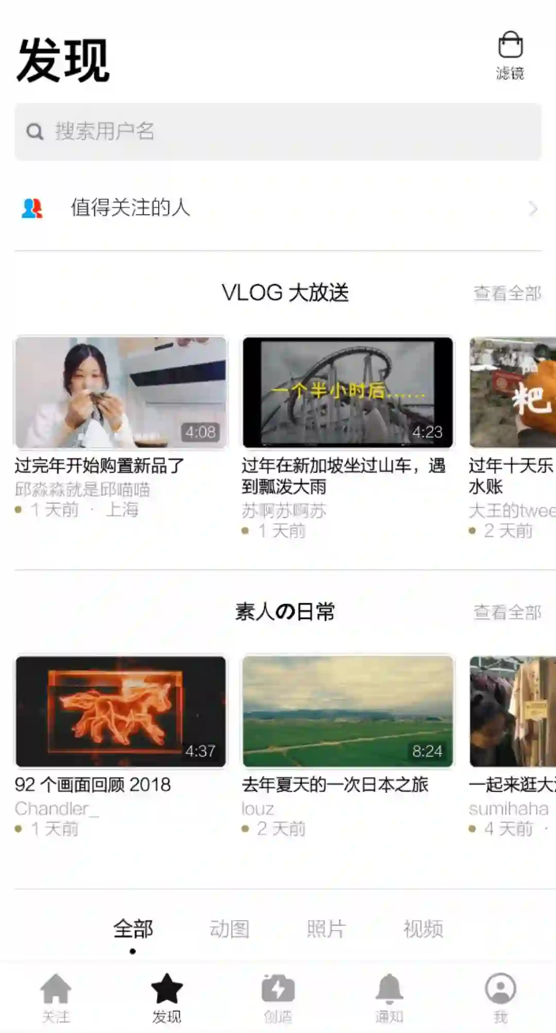 让飞猪了解到Vlog这一形式的,是他的朋友井越。在接收了来自井越安利的Casey(Vlog之父)的视频之后,飞猪感受到了这种形式的有趣,于是决定将「 一闪」的视频功能设计都围绕着这个方向做。