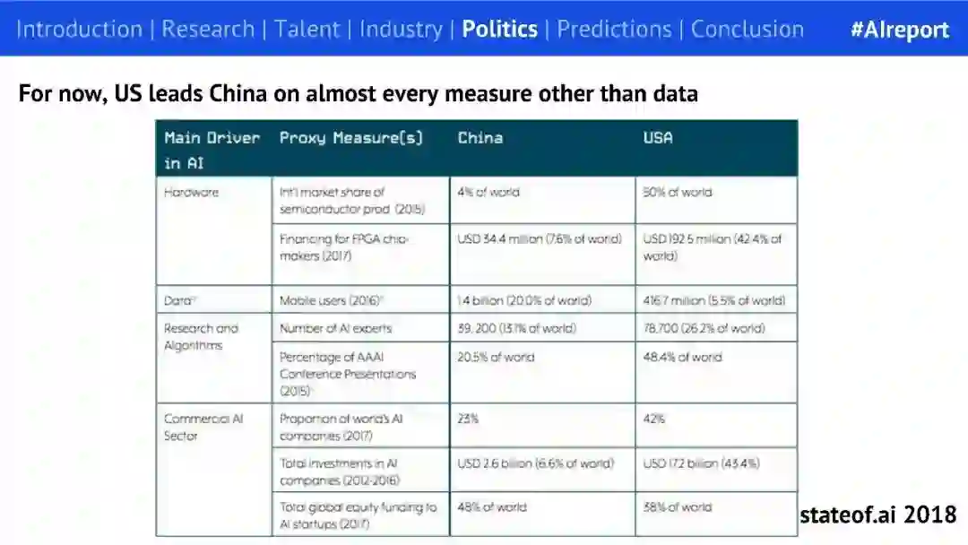 目前,除了在数据获取方面,美国在其他方面均领先于中国。美国也越来越多地通过 CFIUS(美国外国投资委员会)来阻止企业收购美国公司。