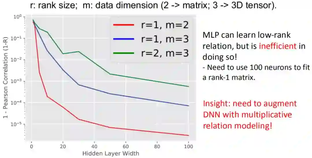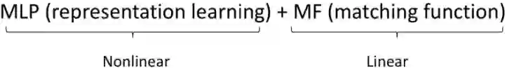 对比普通的 CF 模型,最大的特点是在 representation function 中,增加了非线性的 MLP,但是由于输入是 one-hot 的,假设用户规模是100万,MLP 的第一层隐层是100,整个网络光 user 侧的第一层参数将达到1亿,参数空间将变得非常大。