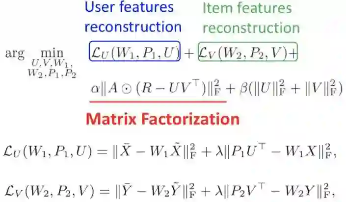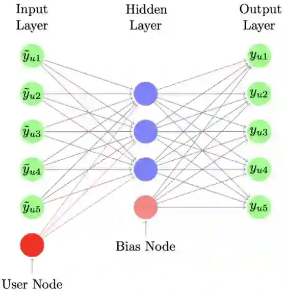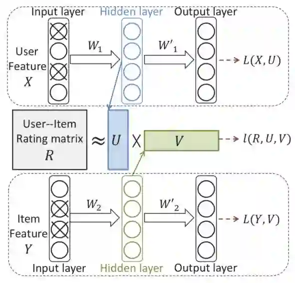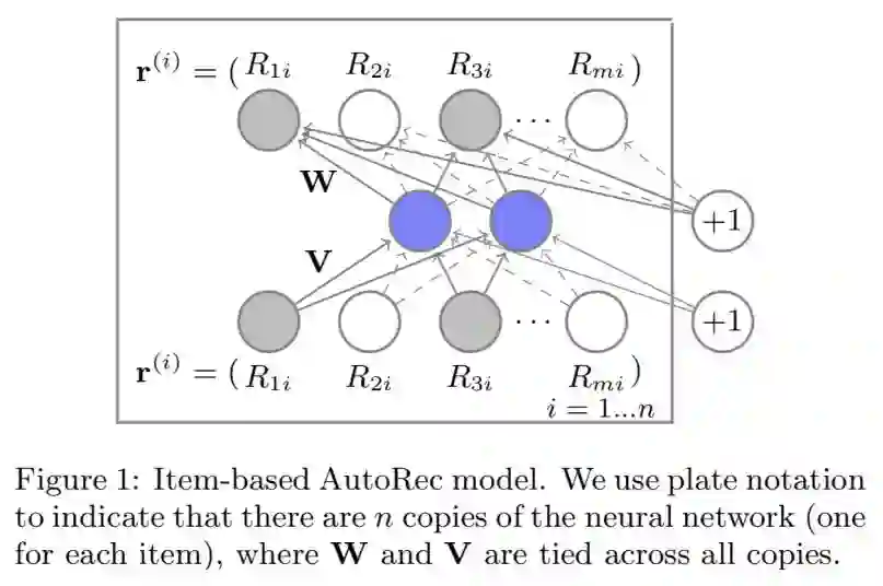 用 ru 表示用户向量,ri 表示 item 向量,通过 autoencoder 将 ru 或者 ri 投射到低维向量空间 ( encode 过程 ),然后再将其投射到正常空间 ( decode 过程 ),利用 autoencoder 中目标值和输入值相近的特性,从而重建 ( reconstruct ) 出用户对于未交互过的 item 的打分。