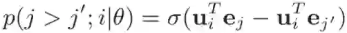 如上述公式所示,不直接拟合用户对 item 的单个打分,而是以 pair 的形式进行拟合;一般来说,用户打分高的 item > 用户打分低的 item;用户用过交互的 item > 用户未交互过的 item ( 不一定真的不喜欢 )。