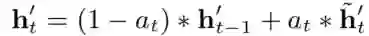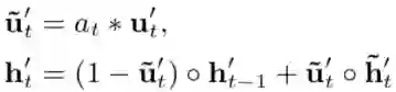 这里作者使用了 attention 权重 at 来取代原始 GRU 中的更新门,表达如下: