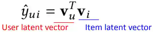 ❶ 将用户 u 对物品 i 的打分分解成用户的隐向量 vu,以及物品的隐向量 vi;
