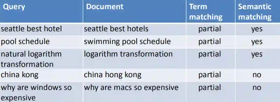 搜索中的两大实体是 query 和 doc,本质上都是文本信息。这就是上文说到的为什么搜索可以通过 query 和 doc 的文本相关性判断是否相关。Query 和 doc 的匹配过程就是在语法层面理解 query 和 doc 之间 gap 的过程。
