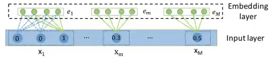 可以发现这里的输入都是 one-hot 的,一般来说 M 用户数比较大,N 作为 item 数量假设是百万级别的。