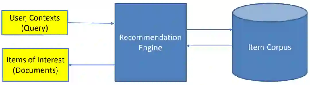 如果把 user 比作 query,把 item 比作 doc,那么推荐和搜索在这个层面又是相同的,都是针对一个 query ( 一个 user ),从海量的候选物品库中,根据 query 和 doc 的相关性 ( user 过去的历史、画像等和 item 的匹配程度 ),去推荐匹配的 doc ( item )。