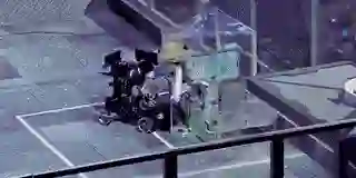 首先他们被分成双方对战,由几人通过无线电图像传输控制自己的机器人,你看他们坐在操作席的样子好像电子竞技啊……
