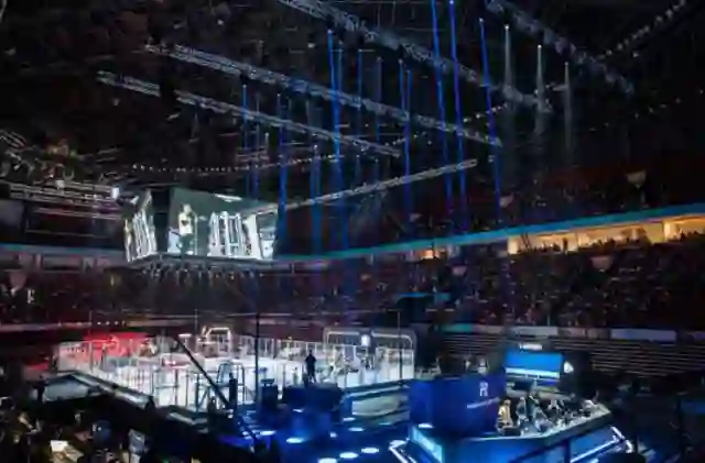 包下一个标准的封闭运动馆,请来了知名的游戏解说,眼看着四面山顶位“黑压压”的坐满了人,看起来就像是一场演唱会…..你一定不会想到这竟然是一场机器人比赛。