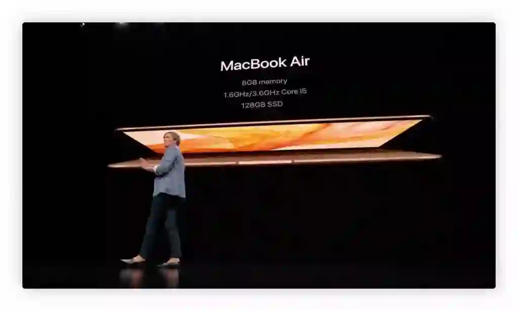 在性能方面,新版 MacBook Air 搭载了 T2 安全芯片和第 8 代英特尔处理器,支持 Touch ID 和 hey Siri 唤醒功能,支持外接 4K 显示器和 eCPU。在存储能力方面,其有 1.5TB 固态硬盘和最高 16GB RAM 的运行内存。此外,在体验方面,新版 MacBook Air 可全天候电池续航,13 小时 iTunes 电影播放,拥有 400 万像素。