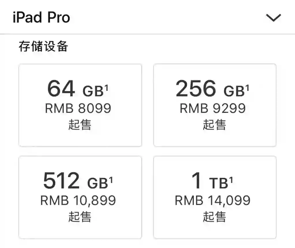 11 英寸的新 iPad Pro 799 美元起售,12.9 英寸的 999 美元起。今天起可预订,11 月 7 日正式发售。国区价格如图,但时间同样待定。