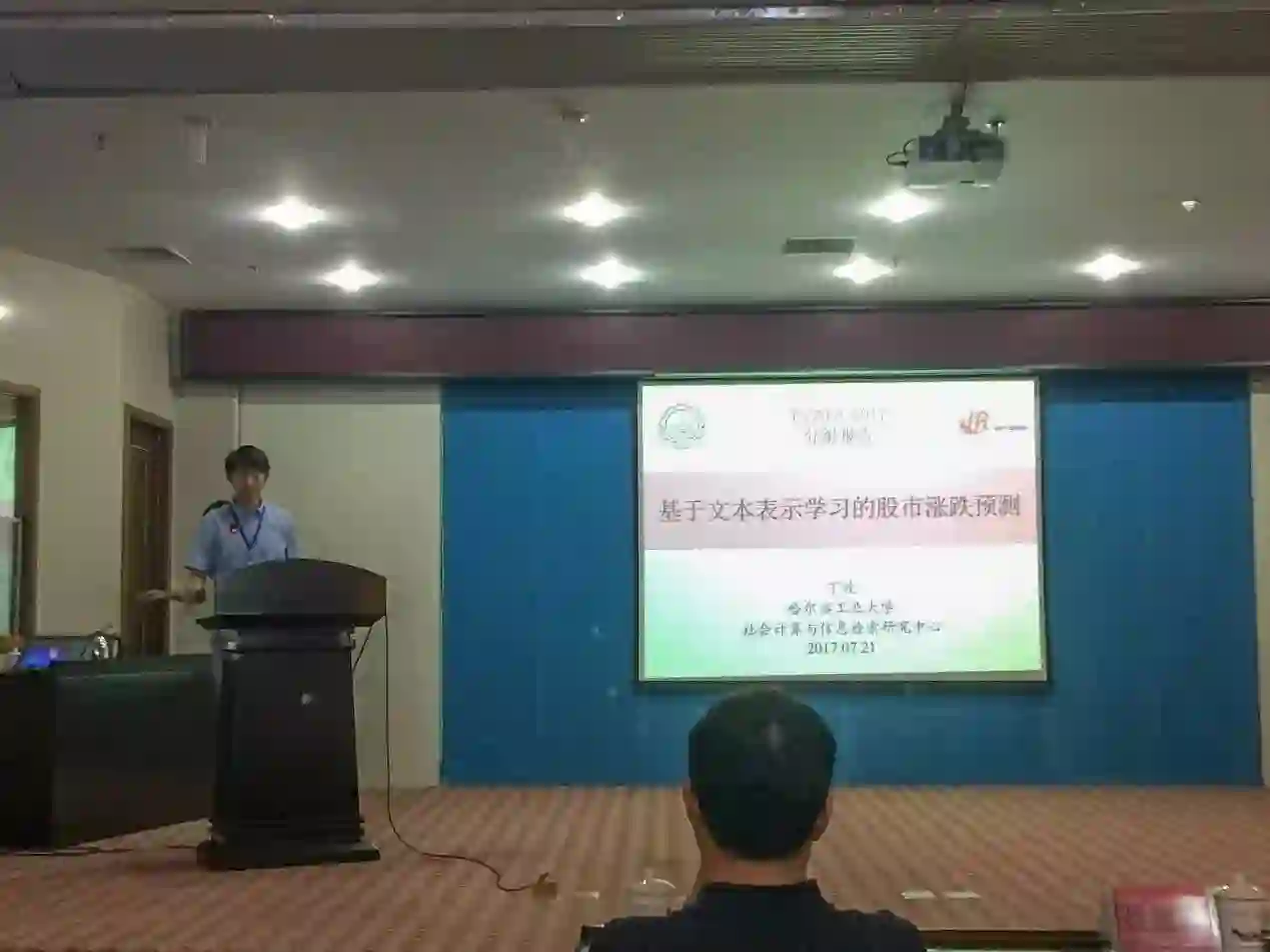 中国自然语言处理青年学者研讨会(YSSNLP)是由中国中文信息学会青年工作委员会主办的学术交流会议。YSSNLP于2004年创立,旨在促进NLP领域国内外青年学者间的学术互动,会议采取邀请制形式,主要参会人员为NLP领域的青年学者。YSSNLP今年迎来第十四届会议,本届会议于7月20-21日在江西井冈山举行,由江西师范大学承办,参会人数近100人。会议内容包括特邀报告和青年学者报告,我中心车万翔、张伟男和丁效三位老师受邀参会。其中丁效老师受邀在会上做题为《基于表示学习的股市涨跌预测》的青年学者报告。