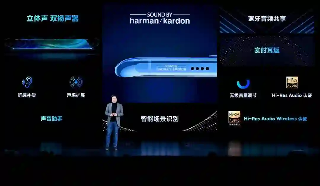 音质方面,小米11采用立体式二合一扬声器,1216超线性单元,可智能识别场景,哈曼卡顿专业调音,Hi-Res认证,并搭载自主研录音降噪算法。蓝牙可同时输出两路数据流,连接两个蓝牙音箱组成立体声或两副蓝牙耳机,支持蓝牙传音,对着麦克风说话可分享给蓝牙音箱播放。