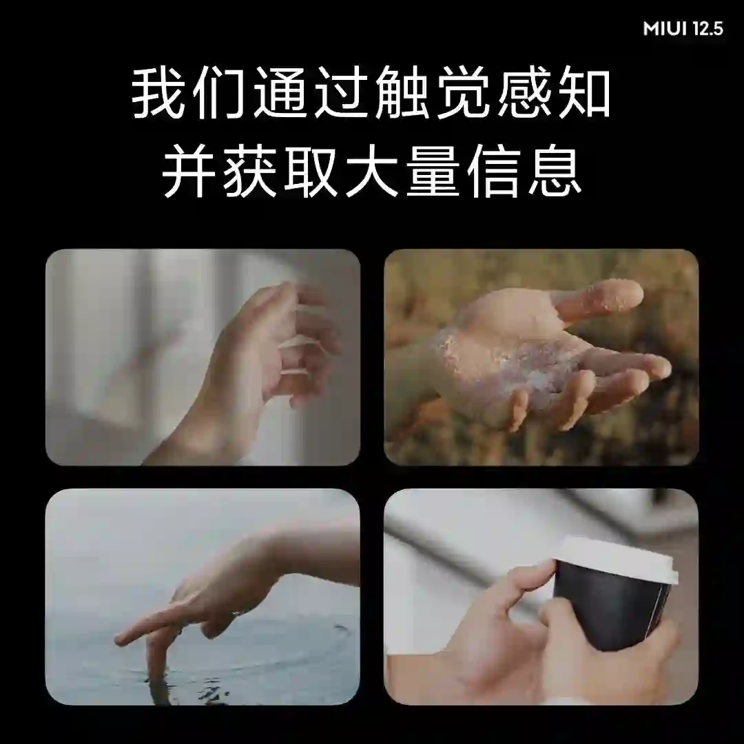 触觉上,MIUI12.5带来了全新自然触感,其提炼现实中的反馈特征,用精细振动呈现自然触感,内置的丰富瞬态触感库,会覆盖全系统。此外MIUI12.5还有专为为无障碍人群做的触感设计,让视障人群也能触摸到信息,该项升级将于2020年12月30日线上发布。