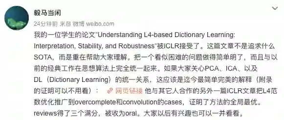 UC Berkeley EECS教授马毅表示,自己一位学生的论文被接受了。“这篇文章不是追求什么SOTA,而是重在帮助大家理解。把一个看似困难的问题做得简单明了,而且与以前的经典工作在思想算法上完全统一起来。如果大家关心PCA、ICA、以及DL(Dictionary Learning)的统一关系,这应该是迄今最简单完美的解释。”