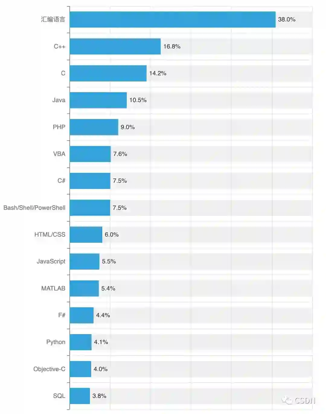 相对于受欢迎的 Python,38% 的开发者对于晦涩难懂的低级语言汇编始终不喜欢,C、C++ 也因其较高的学习门槛,让部分开发者望而生畏。
