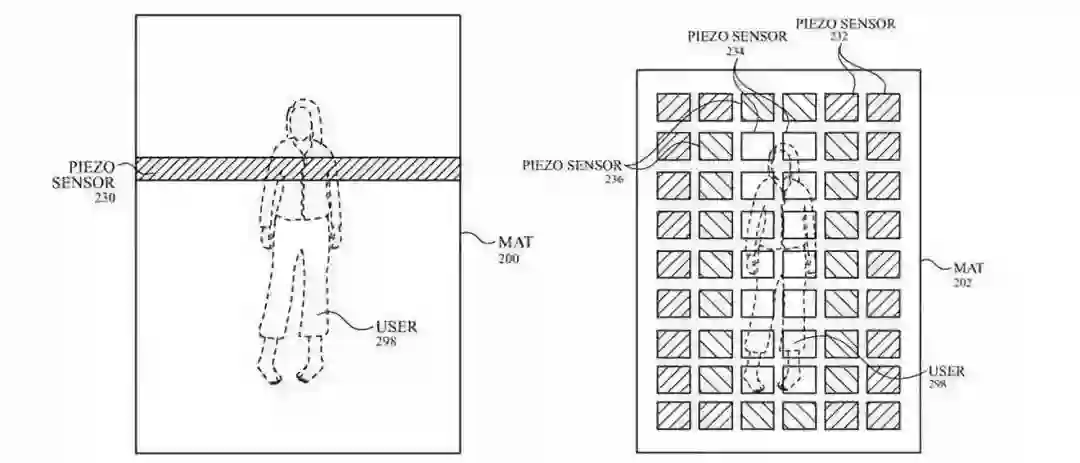 近日,苹果公布了最新健康应用专利:床上生理测量多元件压电传感器,核心原理是在床上铺垫压电薄膜,来实时监测用户和床的接触点,从而分析睡眠期间的动作和质量。申请材料提出了两种睡眠解决方案:一是在床上用户胸部的位置铺一条薄薄的长带;二是在整个床上覆盖传感器阵列,而传感器则被划分为独立的单元,由于传感矩阵更为密集,分布更广,因此可监测更多睡眠指标。