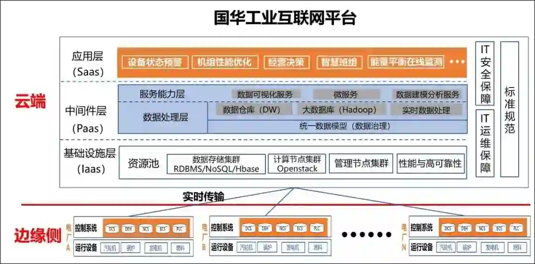 国华工业互联网平台,结合各火电厂自动化、信息化现状,将已接入控制系统的发电机组设备传感器信号通过接口机、网关接入工业互联网平台;还通过无线传输方式将设备信息接入平台,实现平台的充分感知,打通各电厂信息“孤岛”的局面。