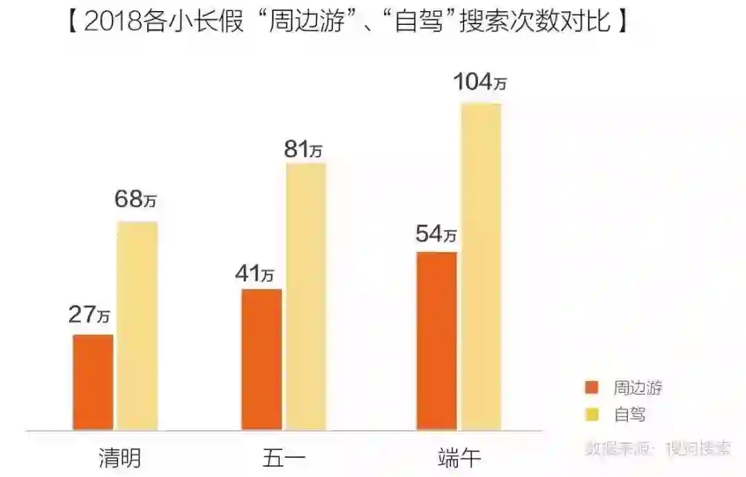 从搜狗搜索引擎的关键词搜索结果来看,“周边游”和“自驾”依然是最热门的关键词,这两个关键词的搜索量均超过今年清明和五一小长假。