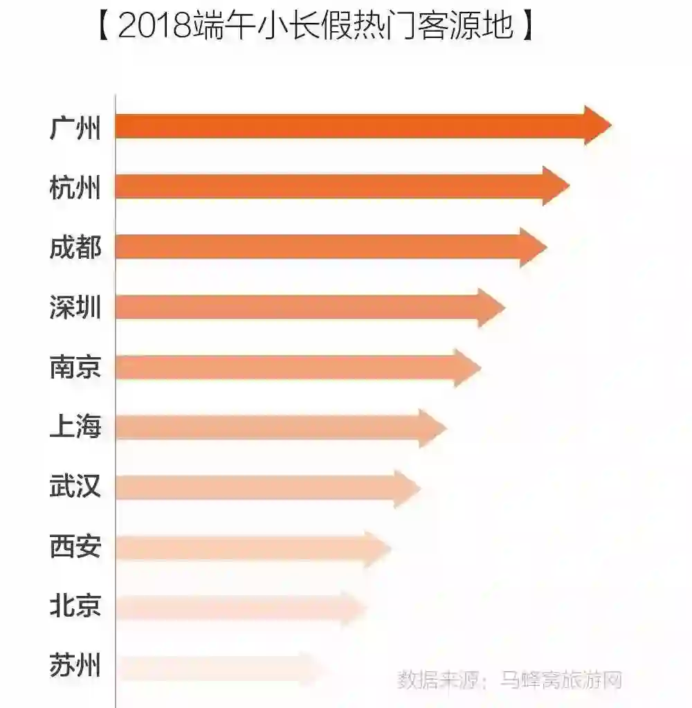 不同网站的热门客源地榜单略有不同,马蜂窝的榜单中,广州、杭州和成都排名前3: